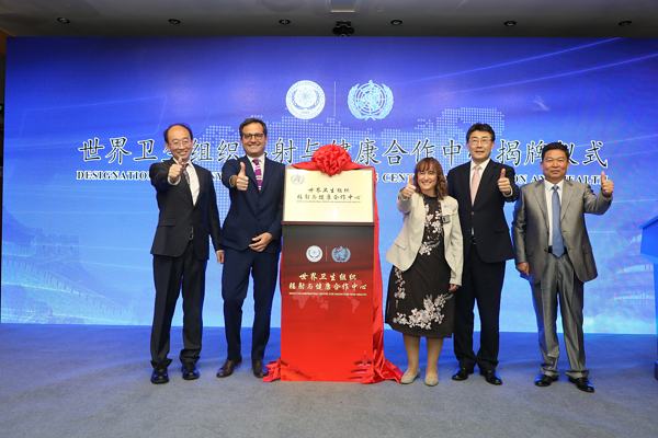 在揭牌仪式上,高福主任、Fabio Scano博士、吴宗之司长、李正懋副主任、周宇辉副局长、秦兴强副局长、陈宁姗副司长、李泰然副巡视员和李娟副处长分别发表了热情洋溢的讲话和致辞,对合作中心的成立表示热烈祝贺,对辐射安全所多年来在放射卫生工作中取得的成绩表示充分肯定,指出WHO任命辐射安全所为辐射与健康合作中心的意义重大,期待合作中心在促进我国核能核技术安全应用,保障职业人员、公众、患者和受检者的健康与安全方面发挥更大的作用,期待合作中心在践行“一带一路”倡议和全球卫生合作交流等方面发挥重要作用,对合作中心工作提出了进一步要求。