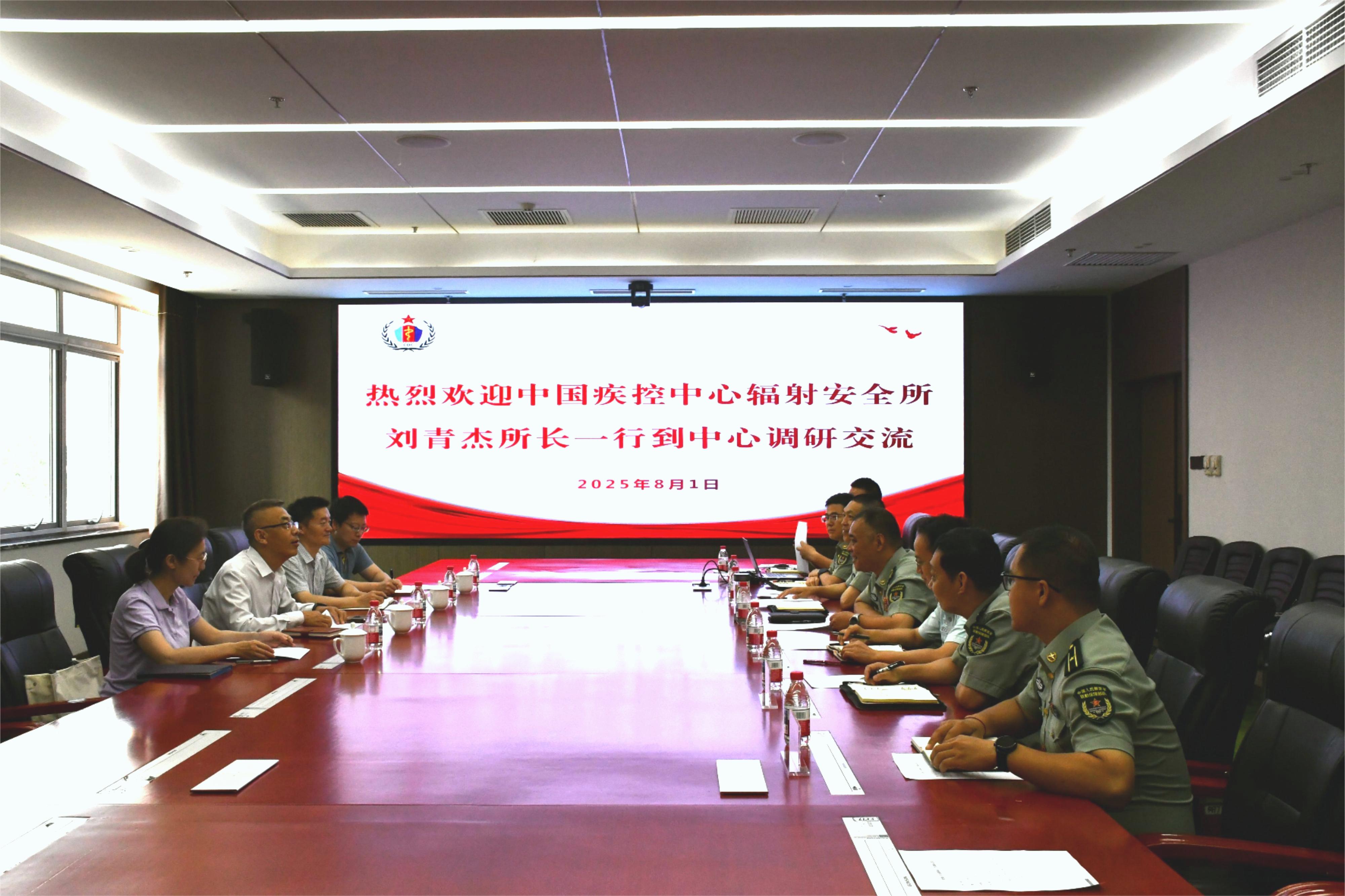 2025年8月1日上午,中国疾控中心辐射安全所刘青杰所长率队赴解放军疾病预防控制中心(以下简称“解放军疾控中心”)进行调研并开展合作交流。本次调研聚焦“提升放射卫生科研水平,拓展合作机制”,并深入研讨全国放射卫生“十五五”发展规划。辐射安全所副所长殷召雪、科技处副处长黄卓、放射卫生检测质控办公室副主任赵骅参加了调研。